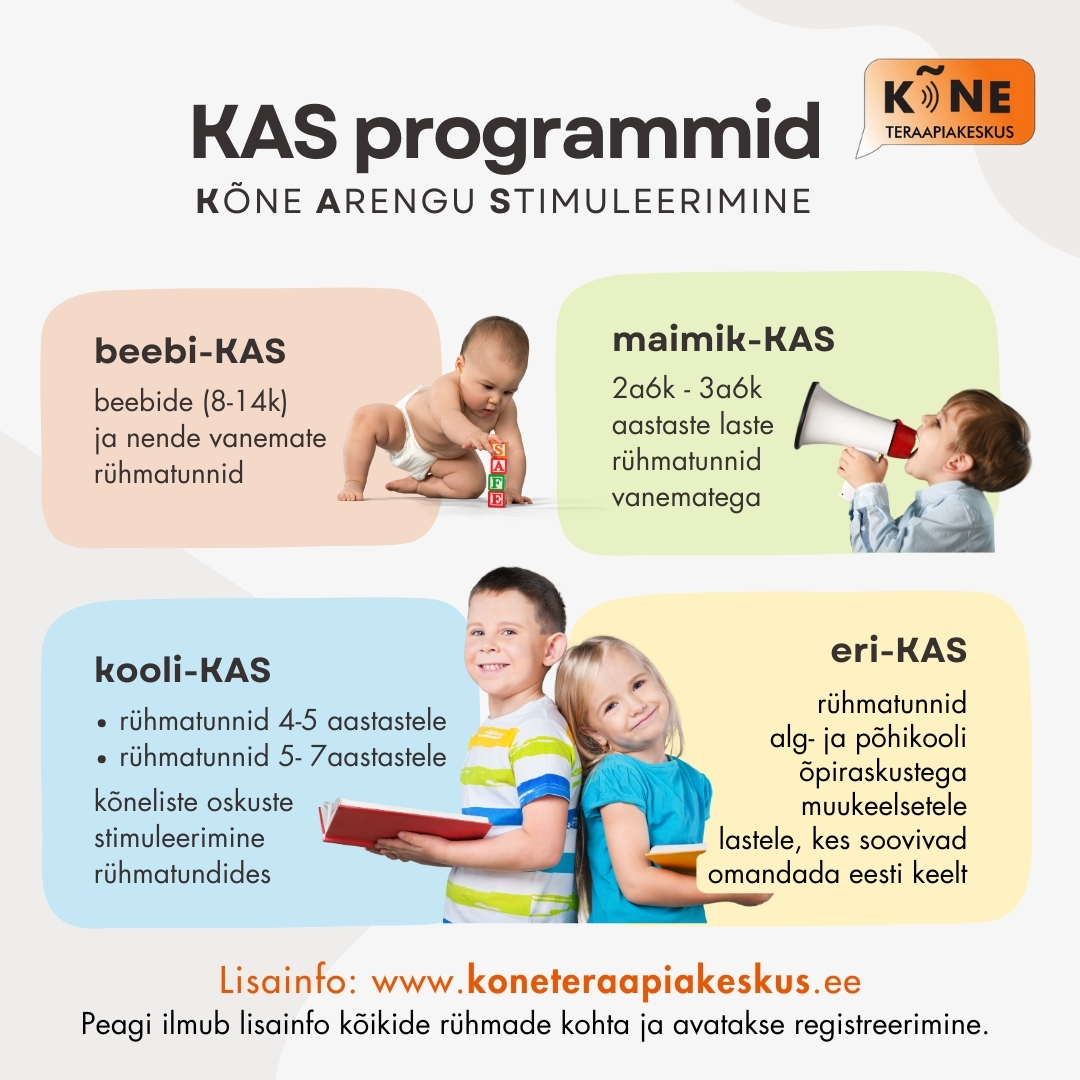 Väikelaste kõne arengu stimuleerimise programm sobib lastele vanuses 2a6k- 4a6k. Lapsed on oodatud rühmatundidesse koos vanemaga. Uuringute andmetel esimese kolme aasta kogemused ja õige stimulatsioon kujundavad suures osas lapse aju arengupotentsiaali.
